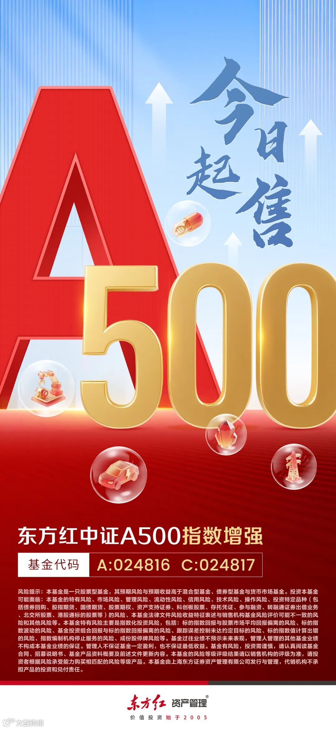 东方红中证A500指数增强基金(A类:024816;C类:024817)的推出,正是东方红量化团队投研实力与投资哲学的集中体现。团队将以一贯的严谨与纪律,致力于在有效跟踪指数的基础上,通过科学的方法论争取持续挖掘超额收益。