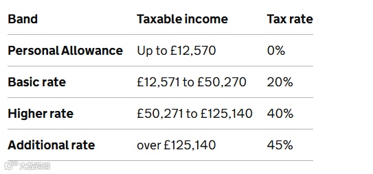 个人免税额£12,570:年收入在这个额度之内的部分无需缴纳任何所得税;