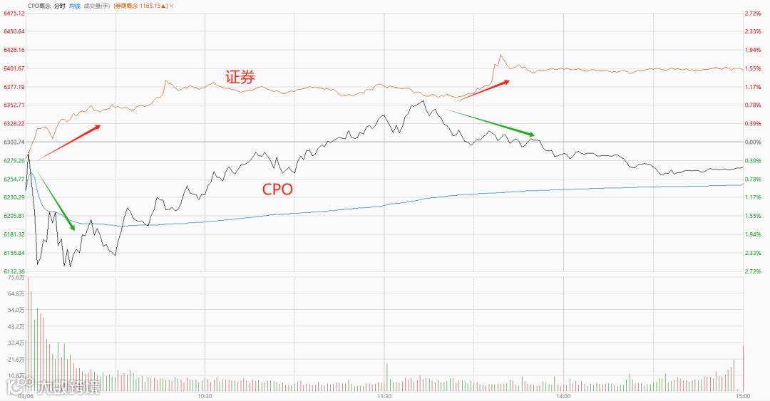 咱们将CPO和证券分时拟合起来不难发现,证券板块的急剧拉升,往往伴随着CPO的回落。