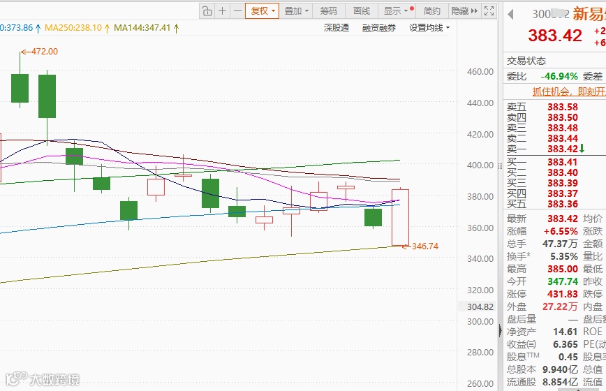 咱们前面谈到的光模块龙头新易S今天也迎来爆发,股价在守住144日均线之后暴力反弹逾6%。就说猛不猛吧?!