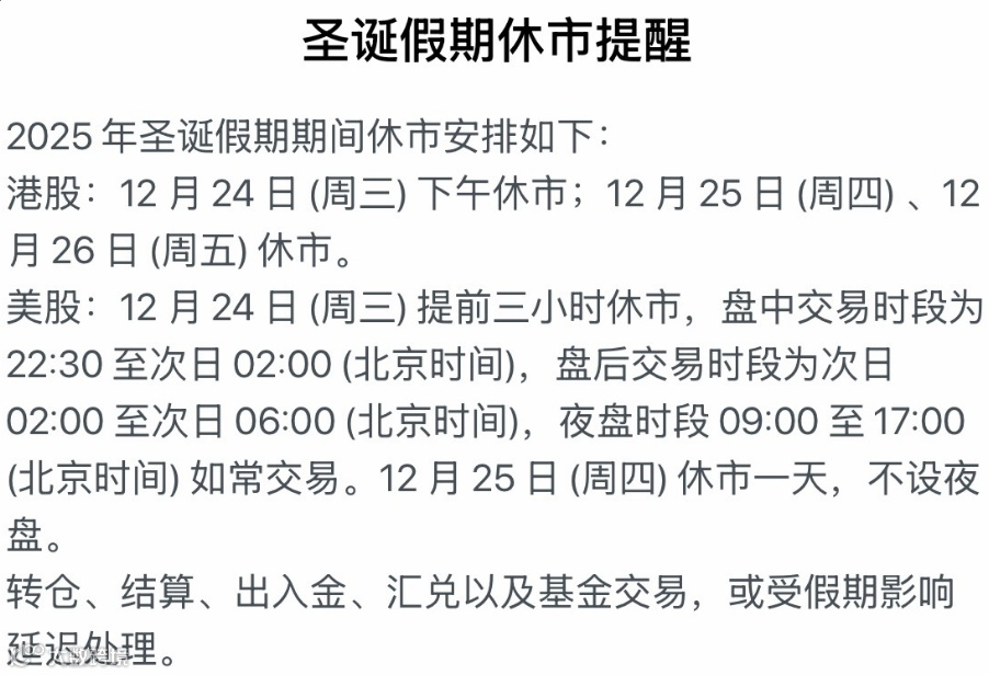 写在最后,明天起,将进入到西方的圣诞假期,港股自明天下午休市,持续到本周五,北上资金下周一开闸。