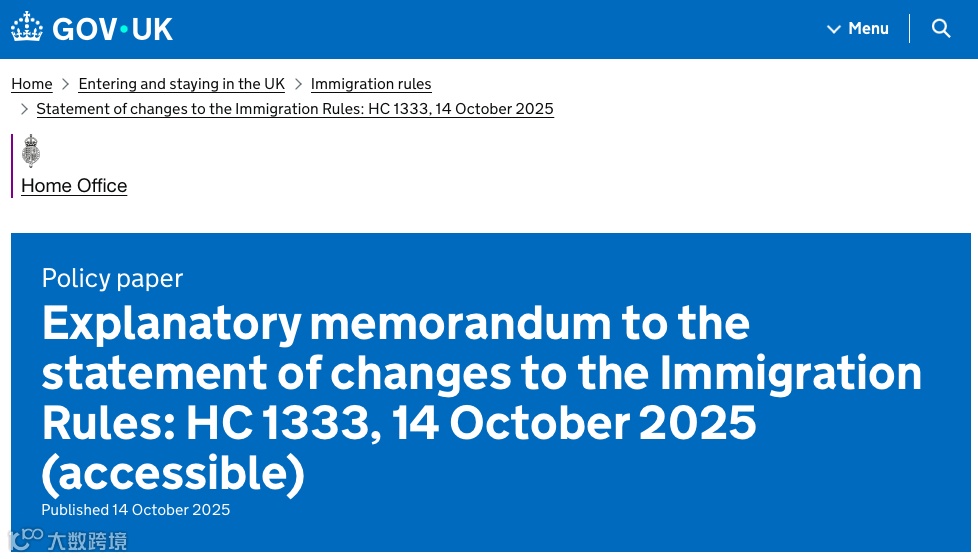 在10月14日,内政部再次发布《移民规则变更声明 HC 1333》,对白皮书中多项移民签证政策的实施时间和细节进行了明确公告。