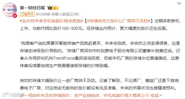 其次是存储龙头“创新”,存储行业依然维持着较高的景气度,涨价压力正传导至下游消费电子。
