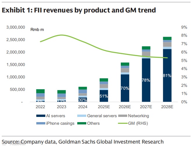 “工业”正从一家传统的手机零部件公司,快速转型为AI基础设施公司。AI服务器收入占比将从2025年的超过50%,增长到2028年的81%,2025到2028年,公司净利润的年均复合增长率将高达37%。