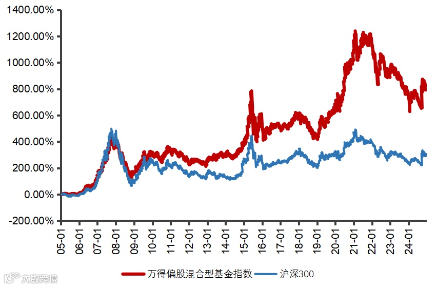 数据来源:Wind,2005.1.1-2024.12.31,偏股混合型基金指数(885001),沪深300指数(000300)。历史数据不代表未来表现及相关类型基金业绩。