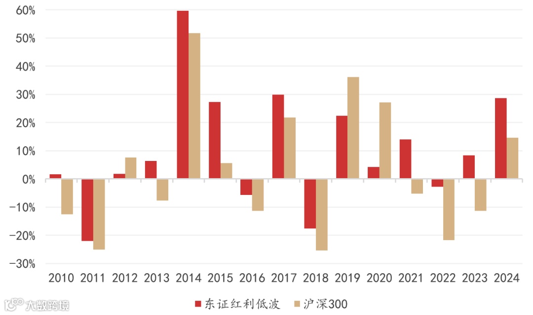 图:沪深300与东证红利低波指数年度表现