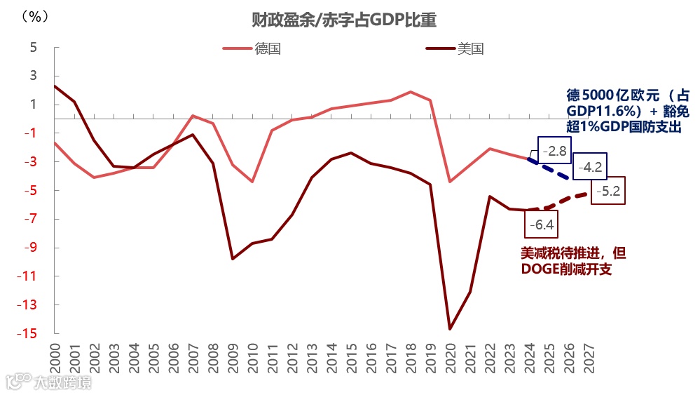 图:欧洲财政扩张 VS 美国财政收缩的格局变化