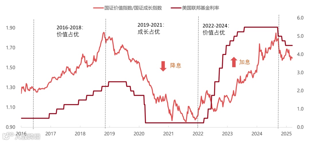 风格上,价值转成长的拐点已现。A股风格基本三年一轮回,除了经济周期,成长VS价值风格受全球利率环境影响较大。2024年9月美联储进入降息周期后,价值转成长的拐点隐现。此外,当前美联储降息空间较为充足,预计渐进式降息依然是美联储政策操作的思路,大方向上有利于成长风格。