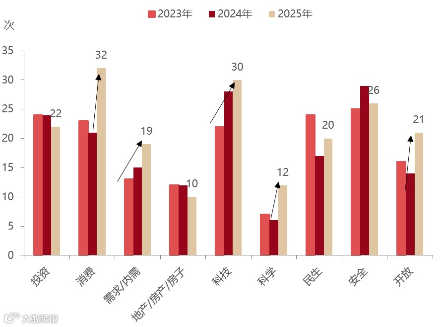2025年全国两会给出了经济稳增长+支持产业创新的政策组合,“消费”和“科技”成为本次政府工作报告的高频词,不仅体现了高质量发展框架下消费和科技的重要性,也是中国在“稳增长”与“促转型”之间的战略平衡。