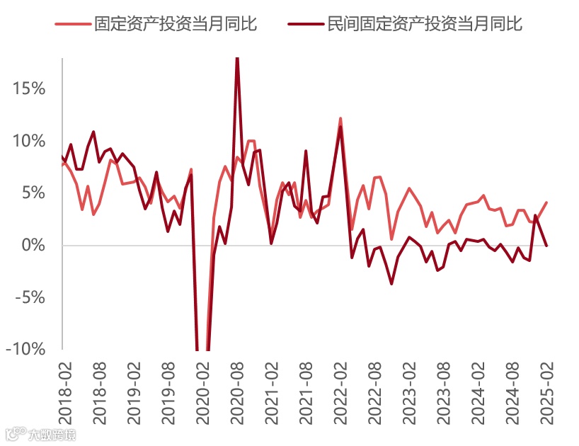 内需方面,本土创新驱动的新质生产力呈现“星火燎原、多点突破”之势,成为结构性亮点。我国近年来实现了诸多科技飞跃,从海外映射到自主创新,微观产业亮点不断涌现;2月民企座谈会增强企业家信心,中国科技领域可能进入“百花齐放”的加速阶段,民间投资增速有望重新回到整体制造业投资增速之上。