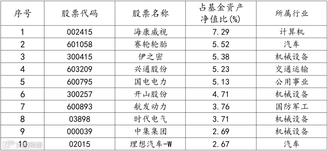 表:东方红远见价值混合A前十大持仓情况