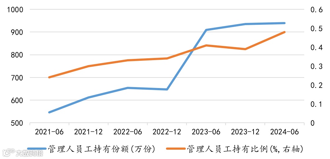 定期报告显示,公司内部员工持有份额和占比稳步增长,自2021年6月至2024年6月,管理人员工持有份额546万份提升940万份,管理人员工持有占比从0.24%提升至0.48%。与此同时,该产品也赢得了很多机构投资者的青睐和信心,定期报告显示,机构投资者占比自2021年6月的0.48%大幅提升至2024年6月底的26.40%。