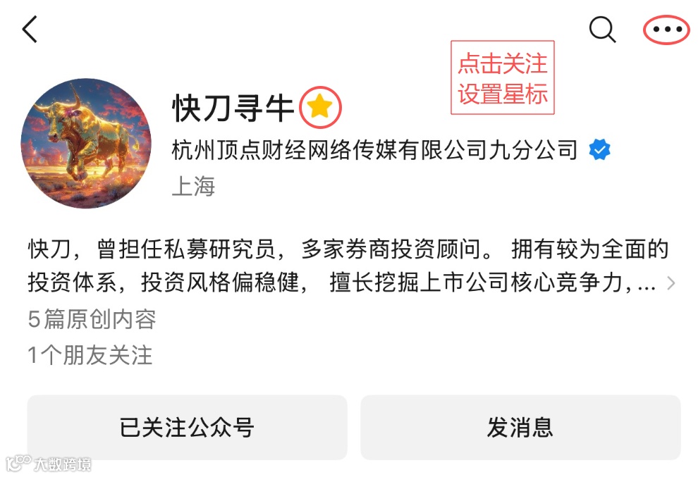 由于推送机制变化,请大家关注后务必点击公众号右上角三个点... ,设为星标,这样才能最快速度收到文章推送哦,如下图~