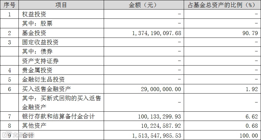 表1、一季末建信福泽安泰混合型FOF资产组合情况