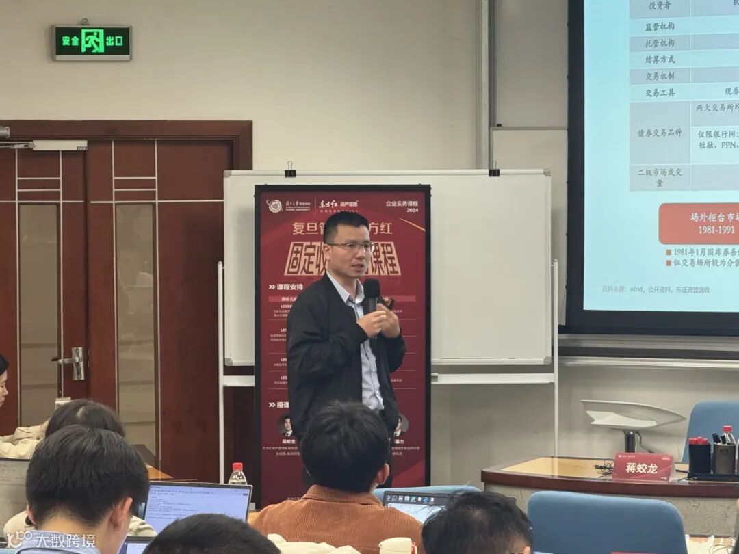 首节课由私募固定收益投资部总经理、投资经理蒋蛟龙就《债券市场概况、债券投资的基本交易模式和核心概念》这一主题进行分享,现场70余名同学踊跃参与,反响热烈。