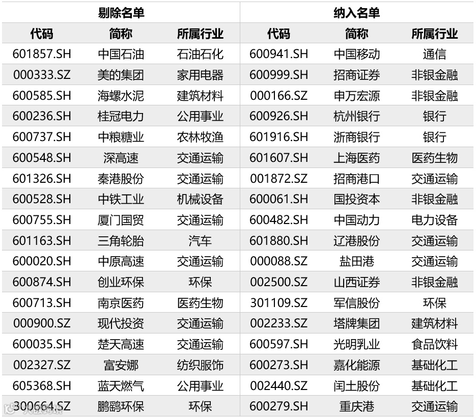 以东证红利低波为例,本次定期调整综合考察备选样本的盈利稳定性、预期股息率和波动率等指标,对成份股进行优胜劣汰,剔除了中国石油、美的集团等18家公司,同时也纳入中国移动、招商证券等18家,指数成份股质量进一步提升。