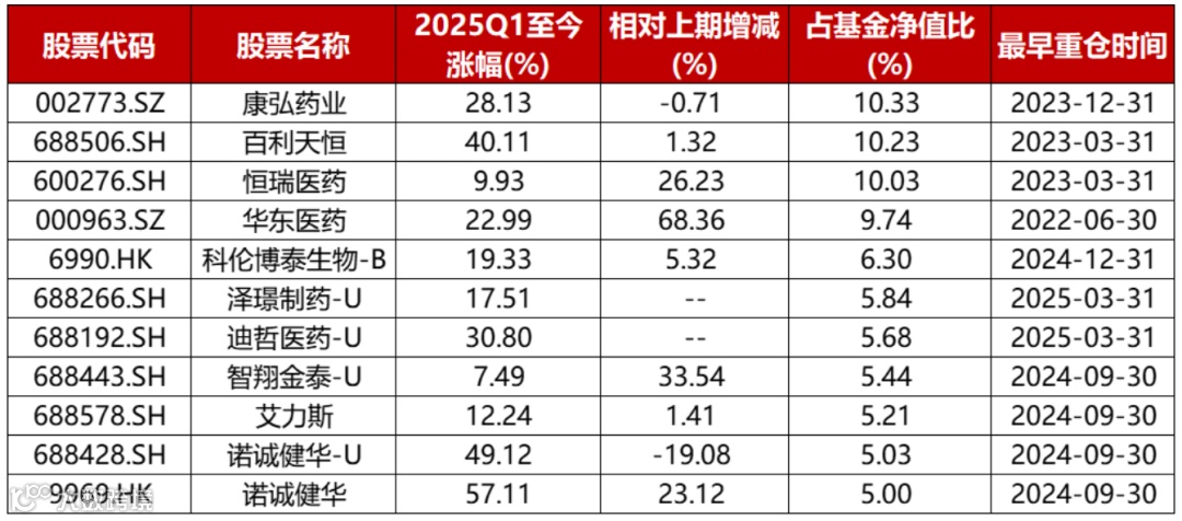 图:东方红医疗升级股票发起基金A 2025年一季报重仓股