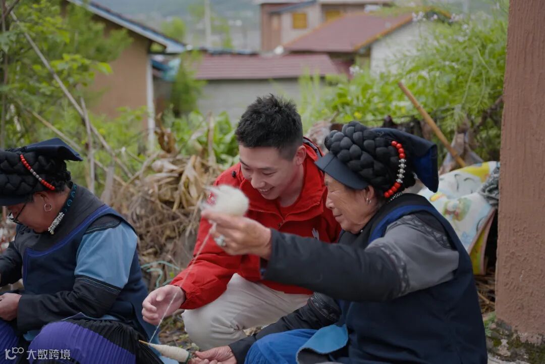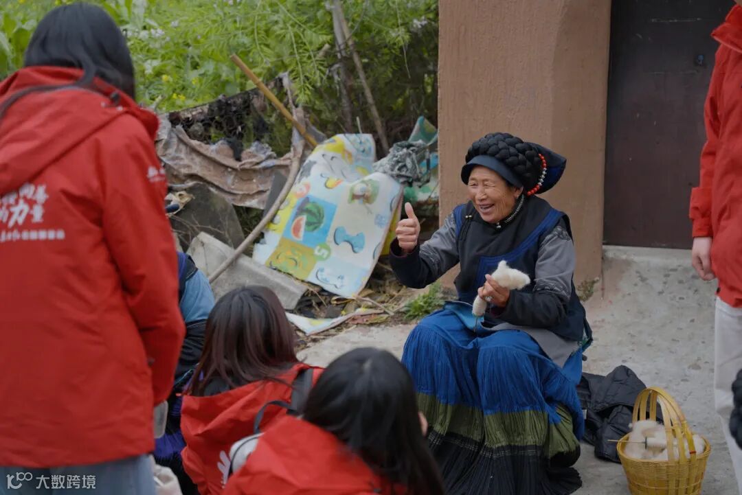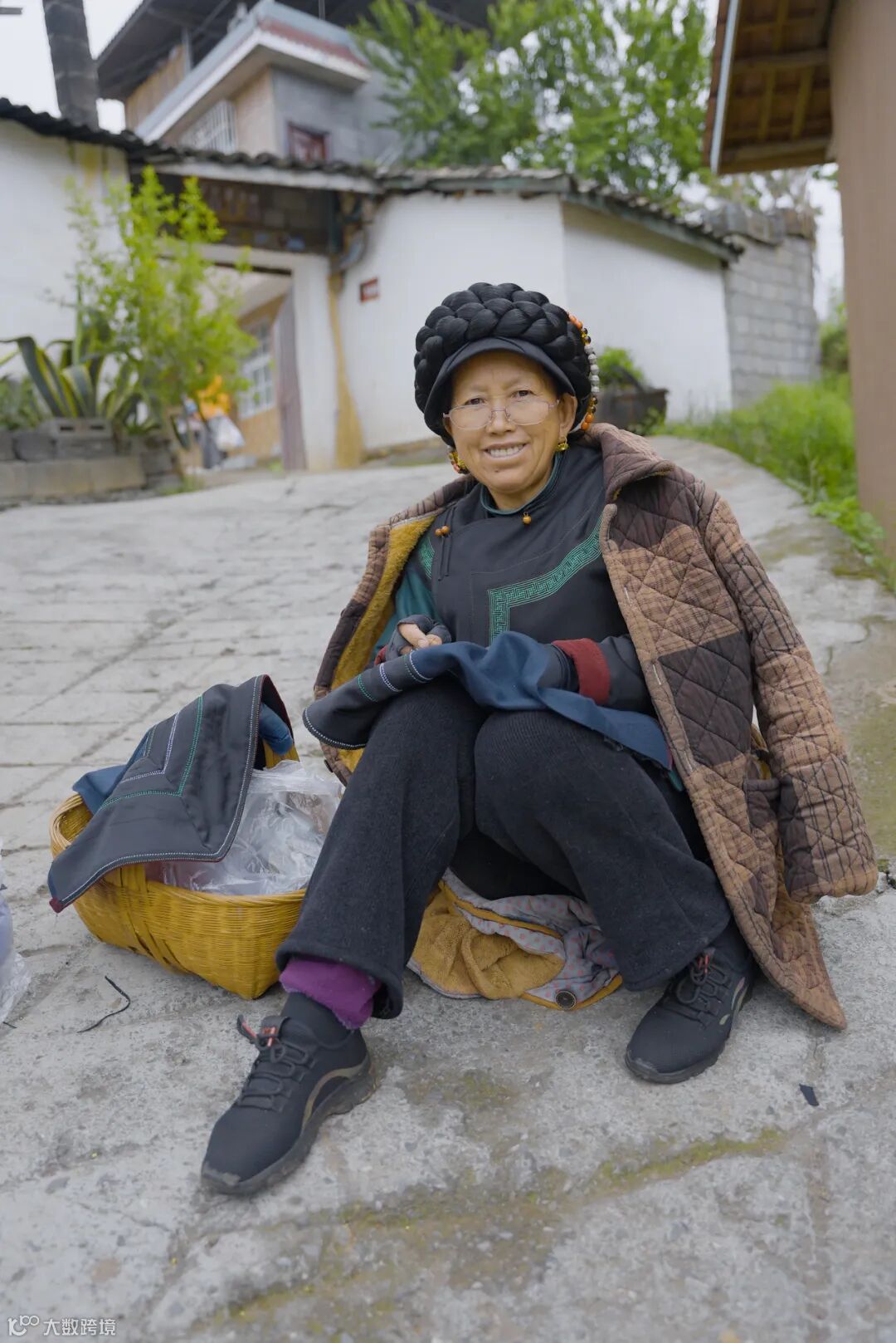 我蹲在几个正在刺绣的彝族绣娘旁边,一位手搓羊毛线的阿嬷笑着和我说,她今年已经77岁了。脸上的褶皱掩盖不了她炯炯有神的双眼,我也仿佛从中看到了她对生活永不熄灭的信念之光。