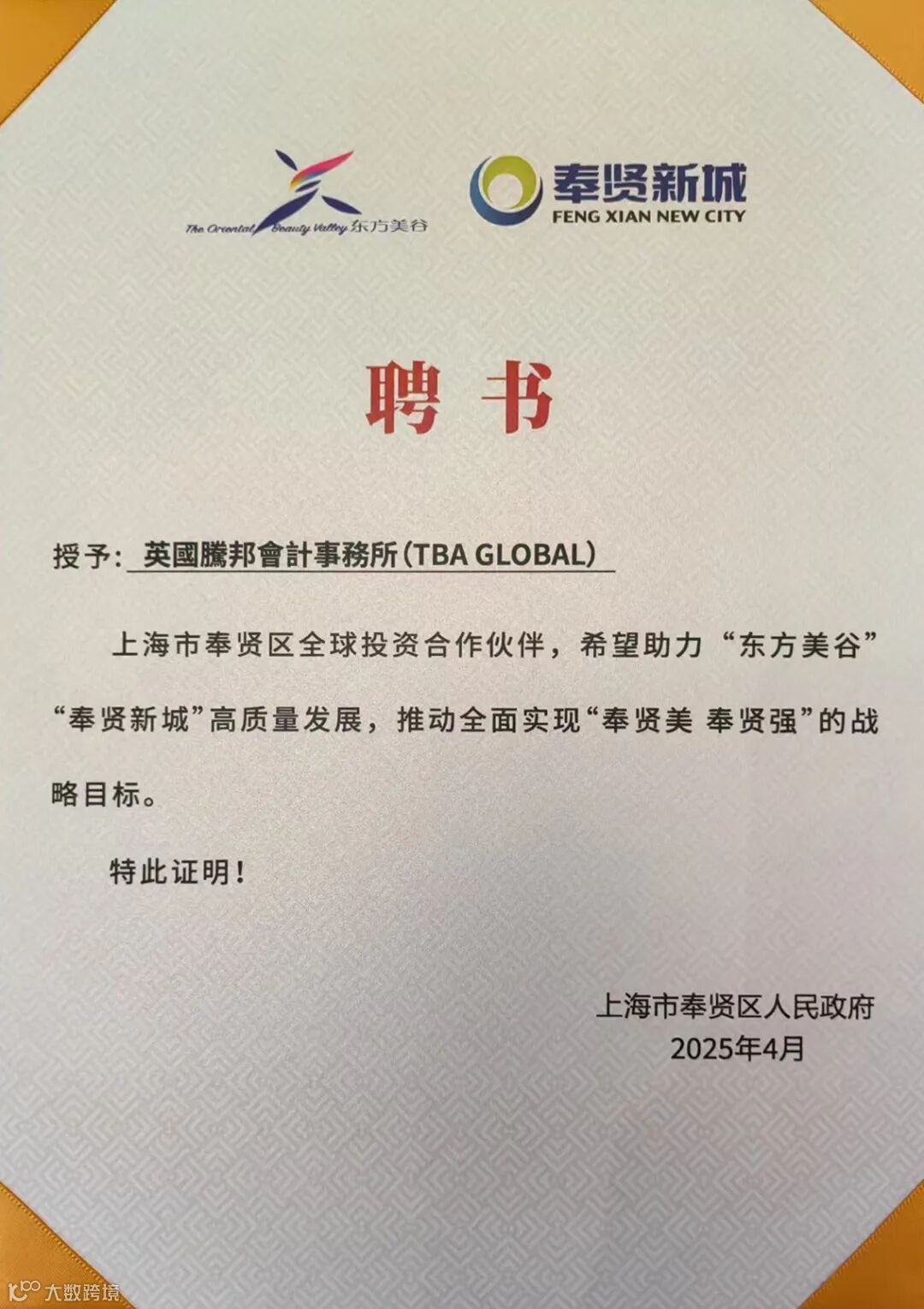 此次携手奉贤,是TBA在服务企业出海征程中的又一重要里程碑,亦彰显其在跨境税务合规领域的品牌力量和行业影响力。相信在双方的共同努力下,奉贤企业将在全球市场中绽放光彩,而TBA也将凭借此次合作,进一步巩固其在行业内的地位,为更多企业提供优质、专业的跨境服务,书写企业出海服务的新篇章。