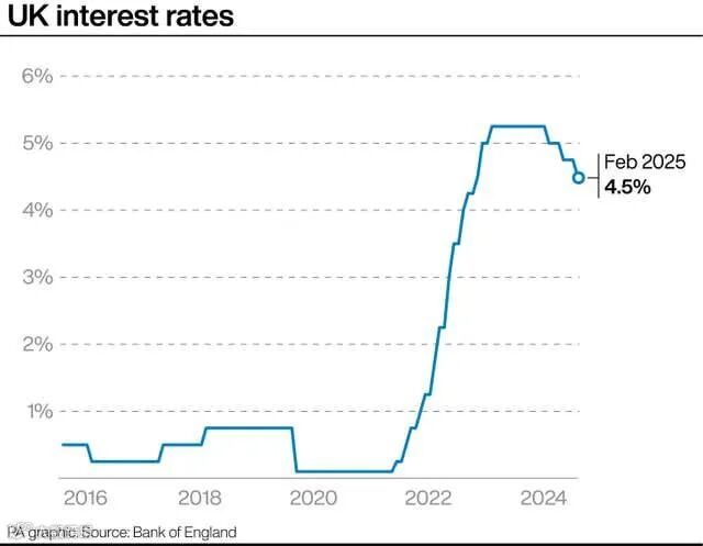 英国央行Bank of England宣布,将利率从4.75%下调至4.5%,为18个月以来的最低水平,并将今年的英国经济增长预测下调了一半——预计2025年经济增长率为0.75%,低于之前的1.5%。