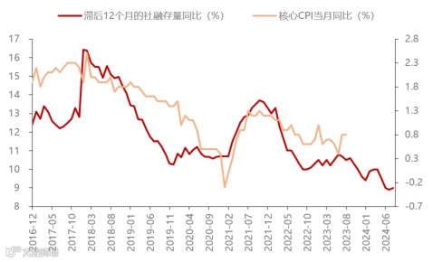 图10:核心CPI同比和滞后12个月社融同比有一定的正相关性