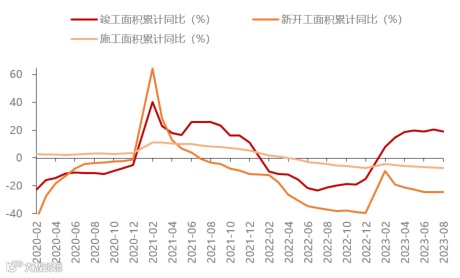 2)地产投资:建安投资方面,在政策层面持续推进保交楼的背景下,2023年以来竣工表现要显著好于新开工和施工:1-8月国内房屋竣工面积累计同比+19.2%,施工(-7.1%)和新开工(-24.4%)面积则均累计同比下降。但保交楼在实际操作中也存在诸如地产销售较弱影响保交楼专项资金的撬动效应等问题,因此对竣工而言,地产销售也仍然是重要症结所在。一线城市认房不认贷,下调首付比例下限、存量首套住房贷款利率及二套房贷款利率政策下限等地产支持政策的出台,有望推动地产销售逐步企稳改善,但从地产销售回暖到新开工复苏,还需要经历房企销售回款改善和库存下降→房企流动性改善→房企资产负债表修复→房企投资意愿提升,因此预计2023Q4整体建安投资仍将承压。土地购置费方面,2023Q4土地购置费同比降幅可能会因为低基数而有所收窄,进而带动整体地产投资同比降幅有收窄,但预计2023Q4地产投资同比表现仍会偏低。