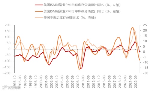 出口方面,美国本轮始于2022年7月的去库周期,一方面导致美国对华商品采购的需求大幅走弱,令中国对美出口自2022年下半年以来持续承压,另一方面通过其外部性,即影响海外其他经济体的对美出口,进而影响其国内经济,最终影响其对华商品的需求,从而拖累中国对这些海外经济体的出口。从若干相关指标看,美国去库仍在进行,且年内大概率仍将延续去库:2023年9月美国ISM制造业PMI为49.0%,较前值+1.4pct,但自有库存分项累计同比-9.7pct至-24.5%,订单库存分项累计同比-8.5pct至-92.3%。从历史来看,中美库存周期大致同向变化,在年内美国库存周期难以看到拐点的情况下,国内库存周期大概率不会出现补库,但2023Q4可能从主动去库向被动去库逐渐切换,制造业景气度有望筑底企稳,这在制造业PMI数据中已显露出迹象:9月制造业PMI新订单分项连续第4个月上升,生产分项连续第2个月上升,且连续第2个月同步位于荣枯线以上;原材料采购量和原材料库存分项均连续第3个月上升,且原材料采购量连续第2个月位于荣枯线以上,表明制造业企业的实际景气情况和预期均有所改善。