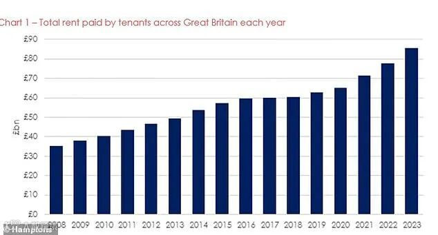 (汉普顿(Hamptons)公布了英国各地租户每年支付的总租金)