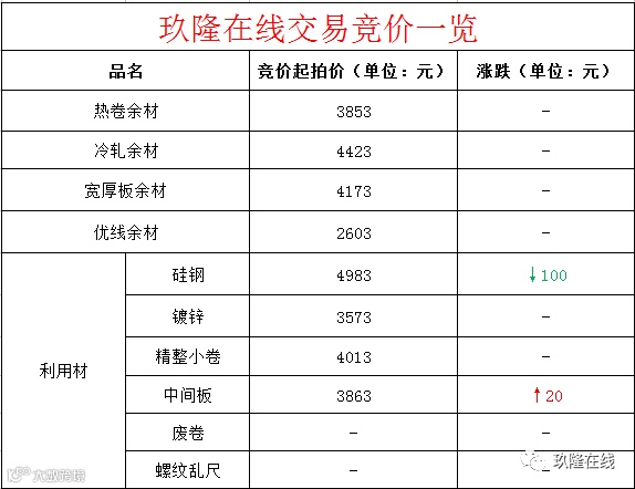 交易大厅┃12月1日玖隆在线交易竞价一览