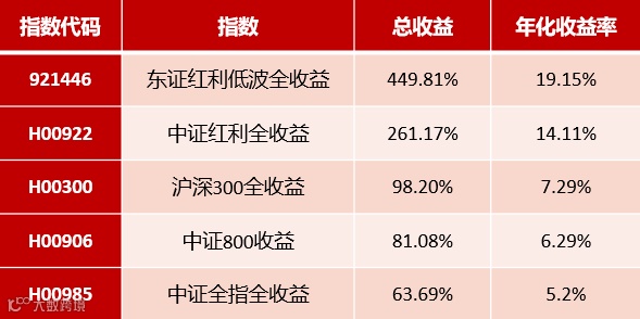 注:数据来源Wind,统计区间2014.7.1至2024.6.30。全收益指数包含了成分股的分红,并对分红自动进行红利再投资。