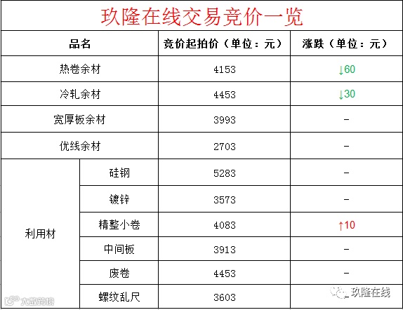 交易大厅┃12月14日玖隆在线交易竞价一览