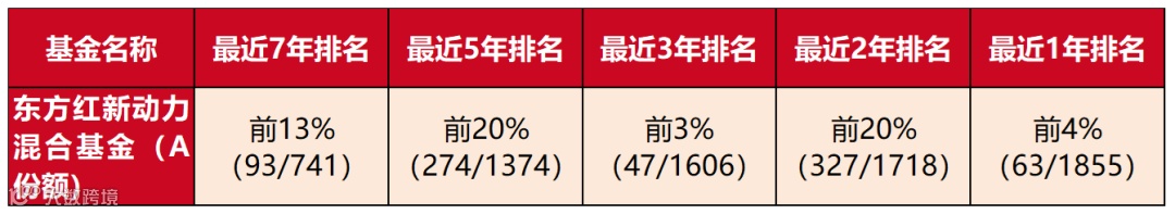 根据海通证券金融产品研究中心2023年12月30日发布的《基金业绩排行榜》,数据截至2023年12月29日,东方红新动力混合基金(A份额)最近七年、五年、三年、两年和一年的业绩排名均居于同类基金前列。