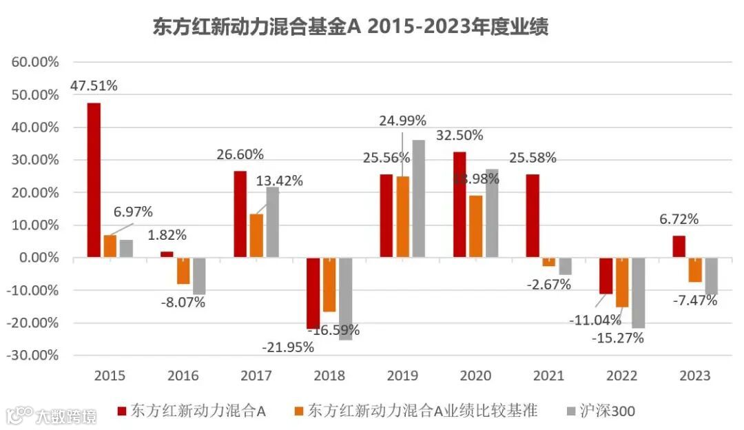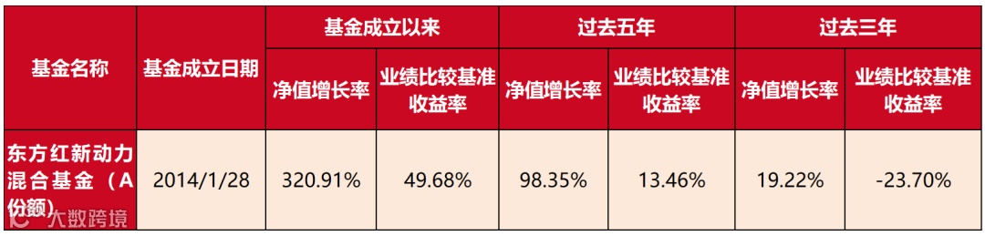 截至2023年12月31日,东方红新动力自成立以来净值增长率达到320.91%,同期业绩比较基准收益率只有49.68%,超额收益达到271.23%。(见文末注1)