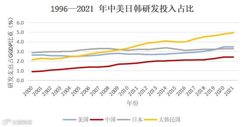 近年来,人工智能、物联网等技术使生产过程变得更加智能化、精细化、高效化。但是,我国在高端芯片、智能终端处理器、光刻机等领域仍面临“卡脖子”的问题。根据世界银行数据库公布的数据显示,从现代化产业的研发投入比重来看,虽然我国的研发占比自2000年起至2021年都在不断攀升,但是与美国、日本等发达国家仍存在一定差距。同时,根据2022年安永联合华为发布的《中国ICT人才生态白皮书》预测,至2025年,我国ICT人才数量缺口将超2000万,在云计算、大数据、物联网、人工智能、5G等新兴技术领域人才供给不足情况突出。因此,发展新质生产力将以科技创新为突破口,进一步推动新一轮产业革命的提供“新动能”。