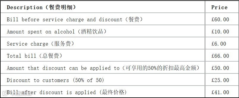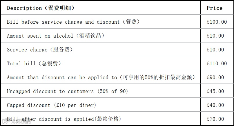 如果一家四口外出用餐,每人点了20英镑的餐点及饮品,政府将补贴一半,你的用餐费用直接从80英镑减少至40英镑!