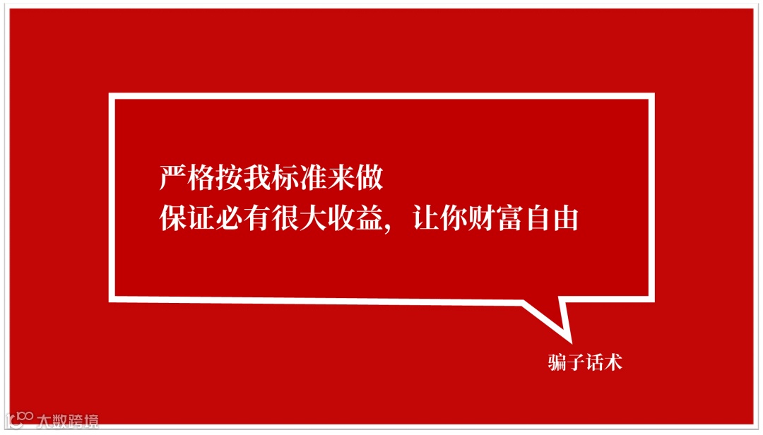 很多投资者到基金公司或者银行柜台直接要求推荐一年涨幅在50%以上的基金。面对这种不切实际的要求,正规公司是不会保证收益和本金安全的,并且会进行风险测评提示投资风险。而骗子往往会以口头承诺形式,给投资者保证一个很高的收益,比如推荐翻倍基金、十年十倍基金等等,让投资者立即签约买所谓的高收益理财产品。