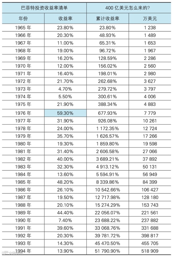 关于长期投资和复利获益,就不得不提一个人——“股神”巴菲特。下表是他45年每年的投资收益情况。