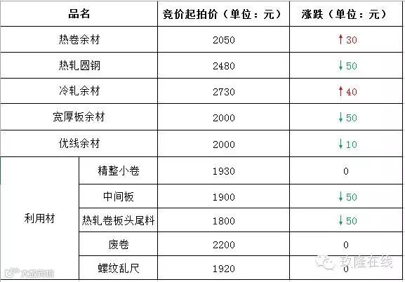 【交易大厅】:今日玖隆在线交易竞价起拍价一览