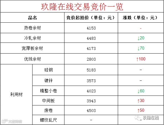 交易大厅┃12月18日玖隆在线交易竞价一览