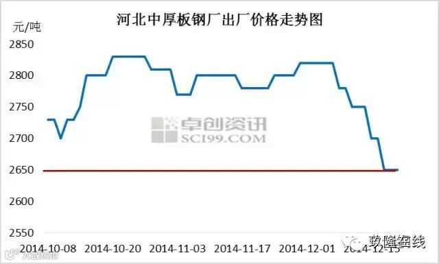 临近收官之际,中厚板北方市场迎来了年内最后一波下跌行情,这也是意料之外的走势。上个月APEC会议过后,库存降至低点的商户陆续补库存,北方社会库存整体增加。而此时的订货成本在2780-2800元/吨,到目前为止钢贸商已经亏损70-80元/吨。接踵而至的利空因素逐渐增多,钢价底部松动,北方市场并由此进入了下行通道。与其走势相悖的则是南方市场,钢价非但未跌,反而有所反弹。在此境况下,国内中厚板南北方市场走势分道扬镳。