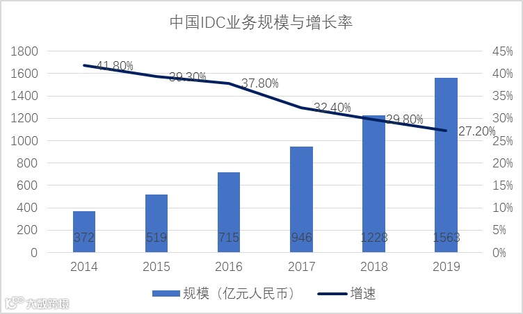 数据来源:科智咨询《中国IDC产业发展研究报告(http://www.idcquan.com/)市场规模是指托管业务及云计算业务带来的收入。