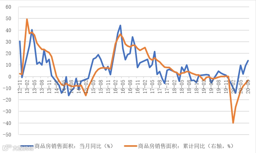在消费方面,上半年全国居民人均可支配收入累计名义同比增长2.4%,但社零累计同比下降11.40%,1-8月新增人民币存款累计同比多增10,196亿元,显示在失业率高企、疫情影响居民消费活动等因素作用下,居民更倾向于将收入用于预防性储蓄而非即期消费。但随着疫情总体形势趋稳,居民基本适应防疫常态化,疫情对居民消费活动的扰动显著减弱。四季度中10月的国庆中秋双节假期(10月1日全国共接待国内游客0.97亿人次,按可比口径同比恢复73.8%,与端午假期首日1,727.6万出游人次相比增长461.47%;实现旅游收入766.5亿元,按可比口径同比恢复68.9%),叠加12月临近新年,可能促进居民将预防性储蓄转化为补偿性消费,尤其是推动可选消费品补偿性增长。2020年末密集的交房需求也将支撑家居建材相关消费回升。在国庆档(灯塔专业版显示,今年10月1日总票房约7.45亿元,居国庆档首日票房影史第二)及贺岁档带动下,电影等文娱消费可能也会迎来相当可观的增长。