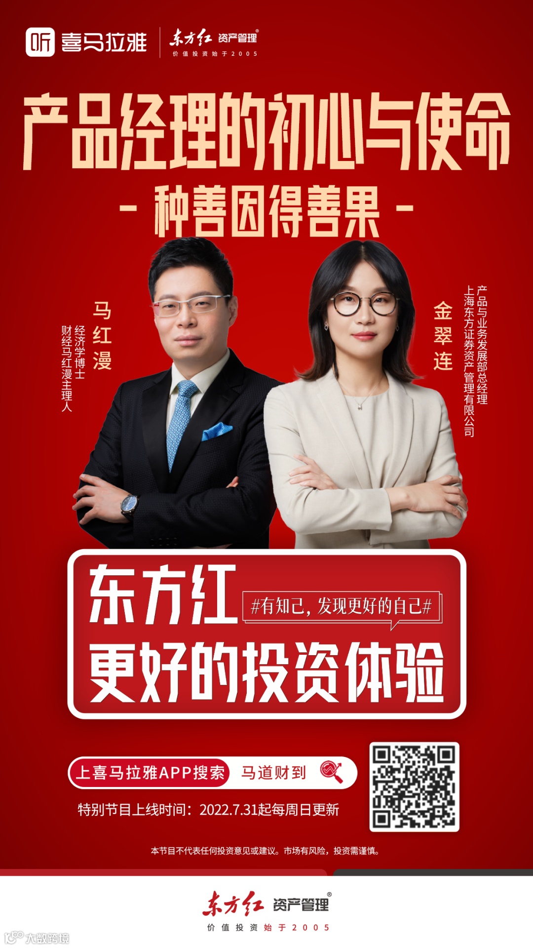 带着这些疑问,《马道财到》最新的系列节目邀请了上海东方证券资产管理有限公司产品与业务发展部总经理金翠连女士做客,听她是如何来答疑解惑的。同时,从产品设计角度出发,她又是如何解读东方红资产管理今年推出的“知己&知己”品牌主题的呢?