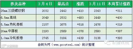 二、钢市上演过山车行情:一周上振超500元,下档近300元