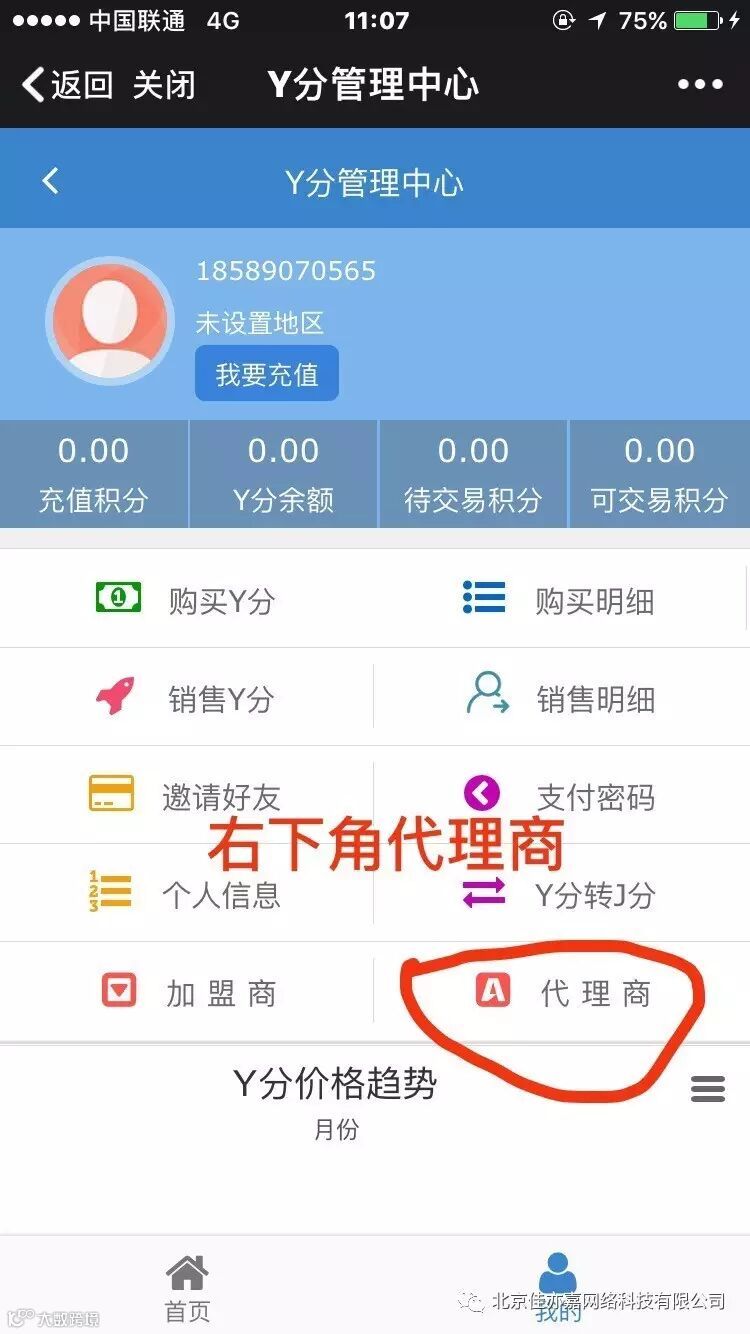 2、所有代理商进入积分管理中心,点击“我的”——点击“代理商”,根据原代理商帐号和密码登录,进入代理商后台。