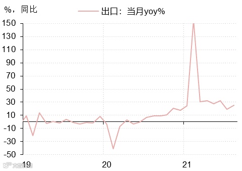 出口绝对额维持了相对较高景气:出口链条在2021年维持了相当高的景气,体现在出口绝对额上维持约20%+的同比增速。背后主要的原因是全球疫情复苏的供需错配,中国比全球提前从疫情中恢复过来,因此成为了全球生产国。但受限于海运价格的上涨,以及海外部分供给的缓慢复苏,预计下半年出口景气度很难再超预期上行。