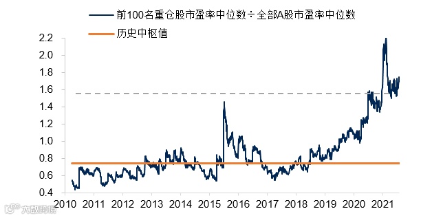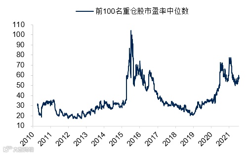 3、整体市场结构比较脆弱,基金重仓板块估值较高