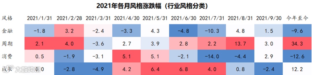 今年前9个月来看,与此前消费成长持续占优不同,周期与小盘风格占优:本质上还是业绩相对景气带来的,部分出口带动的制造业、周期品业绩维持高成长性。
