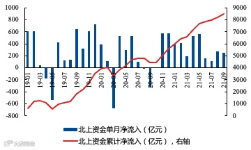 北上资金持续流入(截至2021年9月23日)