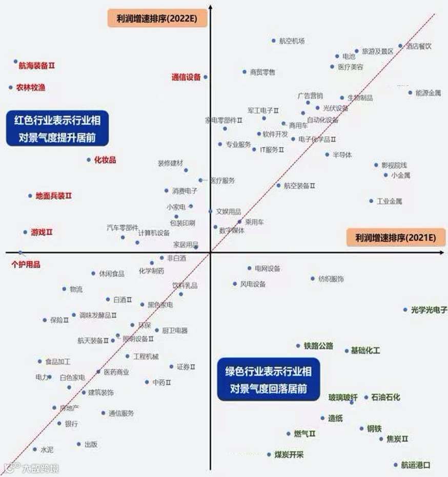 1、看2022年景气度,周期品预期将逐渐承压
